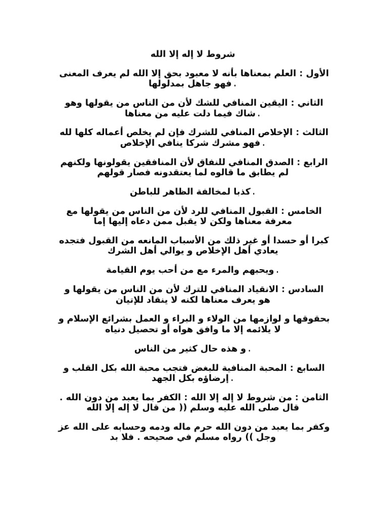 شروط لا إله إلا الله Doc
