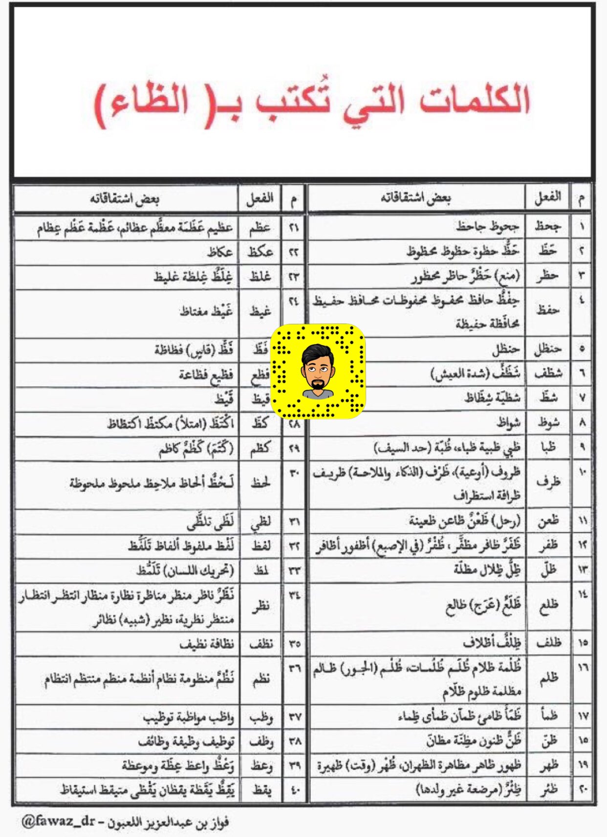 أ عبدالرحمن الغامدي En Twitter دائما يتكرر سؤال في اختبار الكفايات يشوف انت تفرق بين حرف ظ ض والغالب يضيع درجة سهلة ممكن تفيده سهلة الكلمات